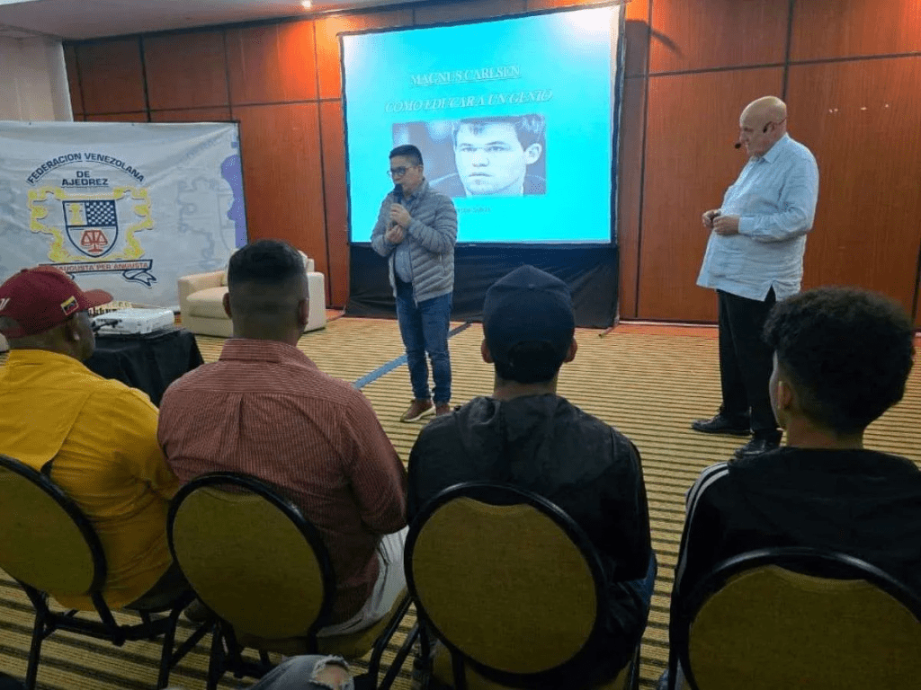 La Visita incluyo la Charla «El Poder Educativo del Ajedrez» dictada en la Escuela Internacional de Liderazgo “Antonio José de Sucre” ubicada en Fila de Mariche, así como dos Charlas con la Comunidad Ajedrecística nacional, tanto en el Hotel Pestana en Caracas como en el Auditorio de la Alcaldía de Girardot en Maracay.