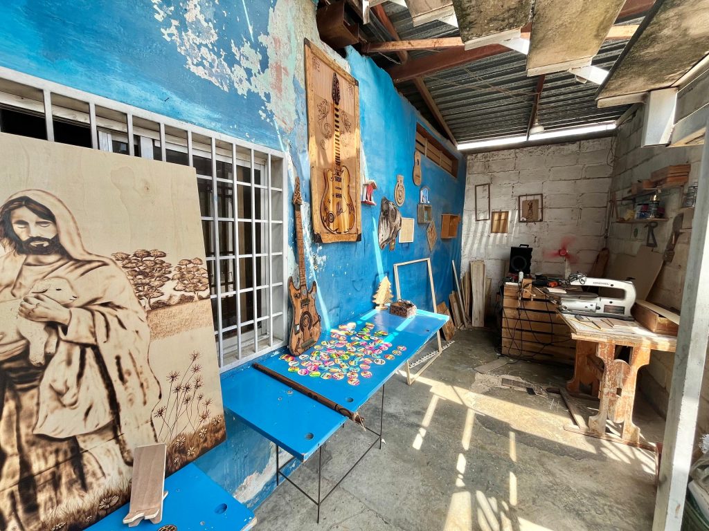 Para sus creaciones, utilizan principalmente madera de pino por ser más económica y también chapilla virola, que aprecian por su blancura y limpieza, lo que garantiza un acabado superior en el trabajo. El espectro de su trabajo es ilimitado; trabajan con «cualquier tipo de imágenes, cualquier santo, la Divina Pastora, Jesucristo, y todo lo que a la gente se le ocurra mandar a hacer».