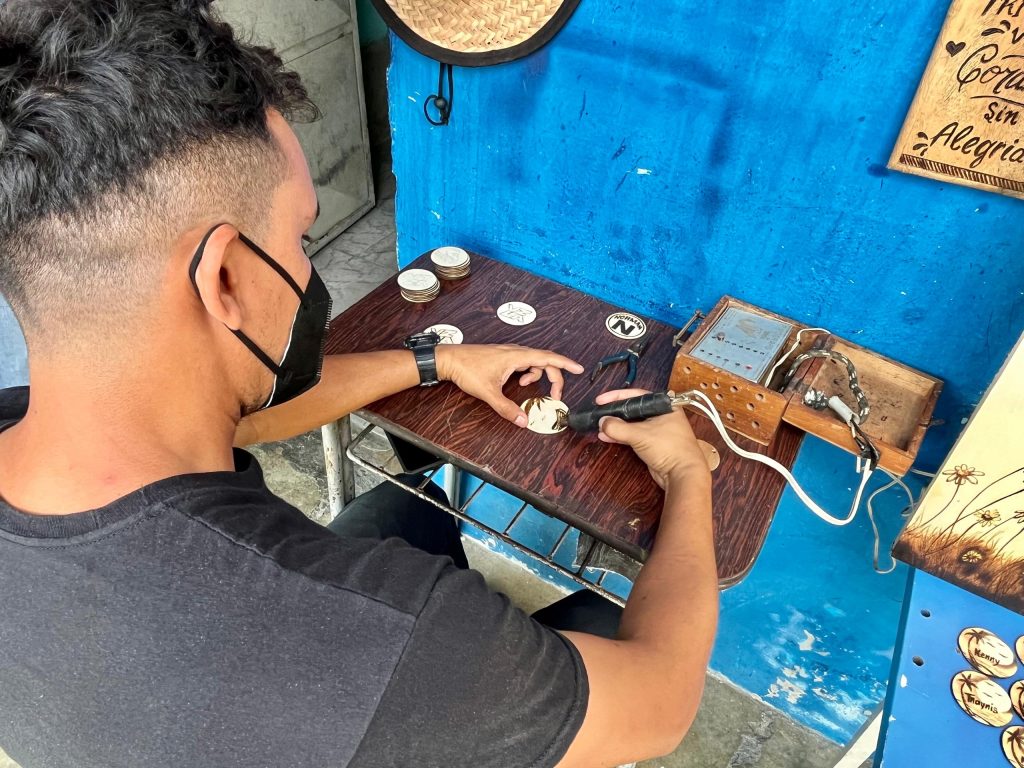 La pirografía, consiste en quemar la madera de forma controlada para crear imágenes, sombras y texturas. «La pirografía es un arte que es demasiado milenario, es quemar la madera, como tatuar», explica Rodríguez, cuyo amor por la artesanía lo llevó a enamorarse del pirógrafo y a comenzar su viaje de manera autodidacta.
