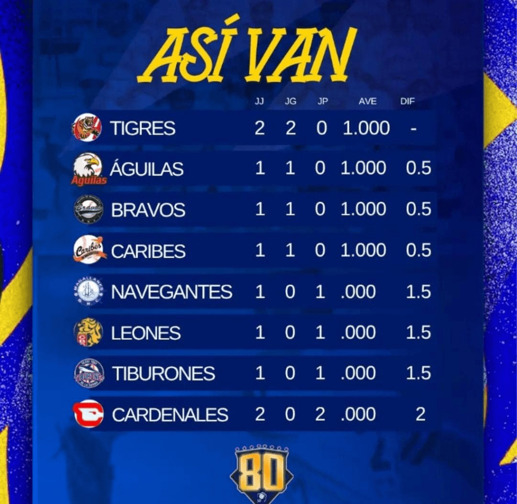 Tabla de posiciones de la LVBP: Los Tigres de Aragua mandan a punta de zarpazos