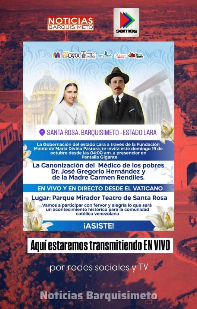 Además, la transmisión estará disponible en streaming a través de los sitios oficiales arquidiocesiscaracas.com, josegregoriodevenezuela.com, madrecarmenvenezuela.com y vaticannews.va/es.html, así como en las cuentas de Instagram, TikTok y YouTube de Somos Televisión y Noticias Barquisimeto.